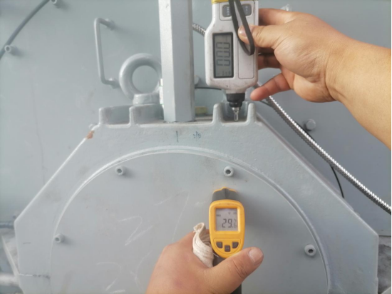 為了確保9月30日增壓風(fēng)機(jī)電機(jī)能夠順利試運(yùn)行,西昌藍(lán)鼎生產(chǎn)部提前組織生產(chǎn)檢修技術(shù)骨干研究試車方案,做到心中有數(shù)爭(zhēng)取一次成功。9月30日上午8:00西昌藍(lán)鼎副總經(jīng)理孫小剛到球團(tuán)施工現(xiàn)場(chǎng)組織試運(yùn)行增壓風(fēng)機(jī)電機(jī),機(jī)修人員仔細(xì)檢查電機(jī)的油路管道、電氣人員測(cè)量了電機(jī)絕緣電阻、操作人員清理電機(jī)平臺(tái)施工雜物。各項(xiàng)檢查工作有序開展。在準(zhǔn)備開機(jī)前送電時(shí),發(fā)現(xiàn)高壓隔離開關(guān)無(wú)法合閘,在高壓隔離開關(guān)的廠家不在現(xiàn)場(chǎng)的情況下,西昌藍(lán)鼎電儀人員根據(jù)檢修經(jīng)驗(yàn)快速的將高壓隔離開關(guān)修復(fù)。