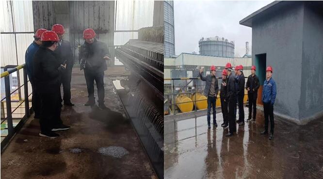 相關(guān)方領(lǐng)導(dǎo)新區(qū)水處理反應(yīng)釜、壓濾機、吹氨塔現(xiàn)場參觀交流